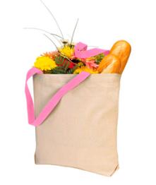 Style: 806 Toppers Natural-Color Tote with Gasset and Contrasting Handles